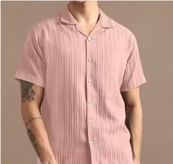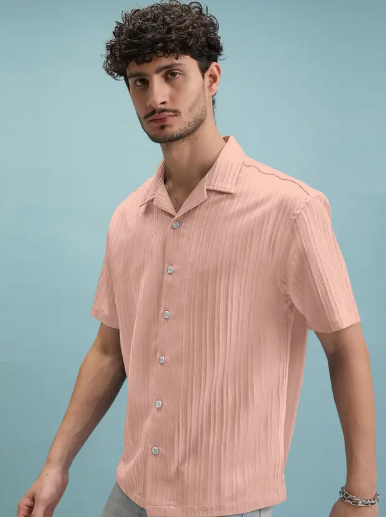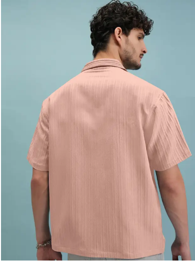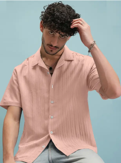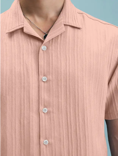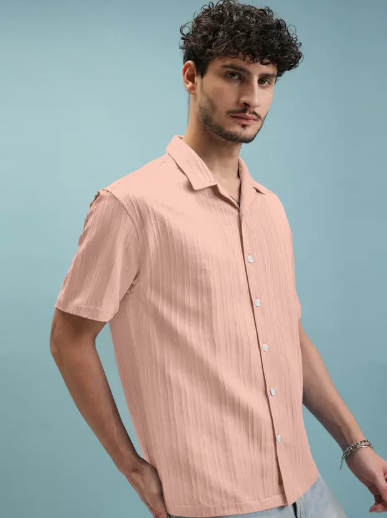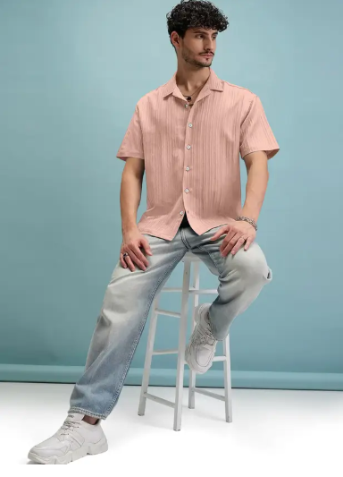 Name : Men’s Peach Half Sleeve Textured Casual Shirt | Soft Summer Fashion | Trendy Daily Wear
