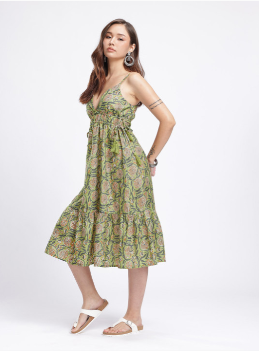 The beautifully tiered A-line silhouette creates a stunning, flowing look that's both comfortable and incredibly flattering. Complemented by a classic floral print, this dress is the perfect blend of modern style and timeless charm.