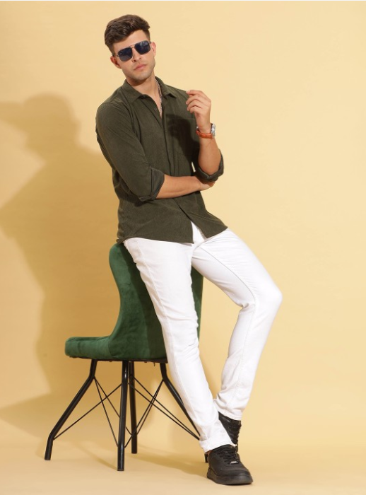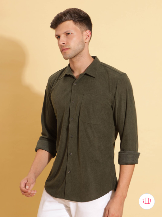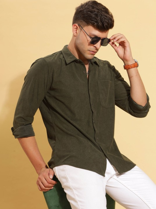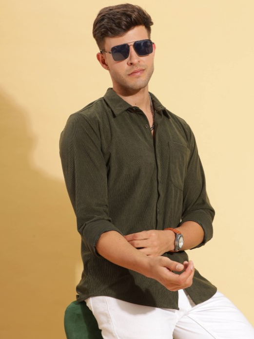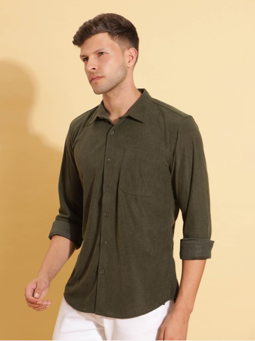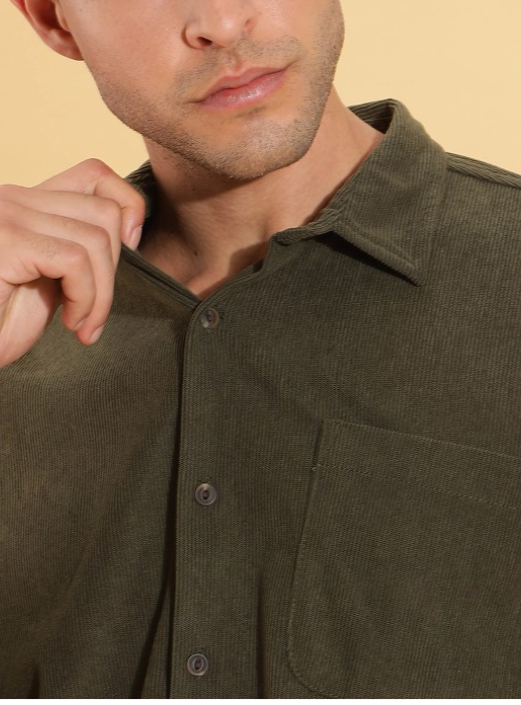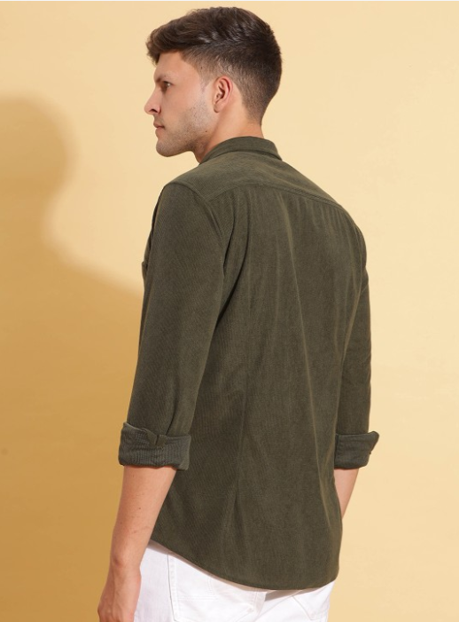 Spread Collar Slim Fit Corduroy Casual Shirt