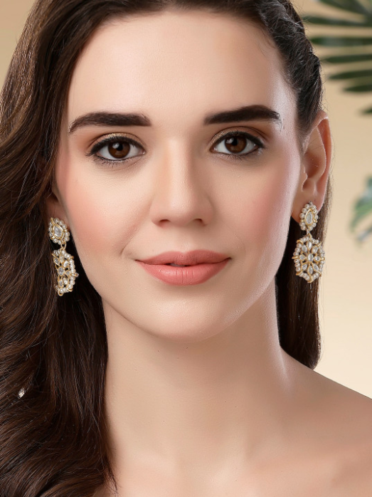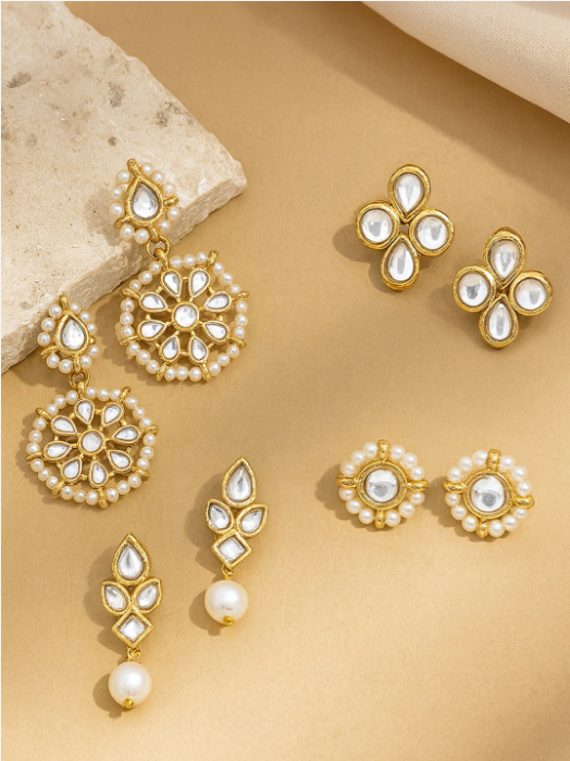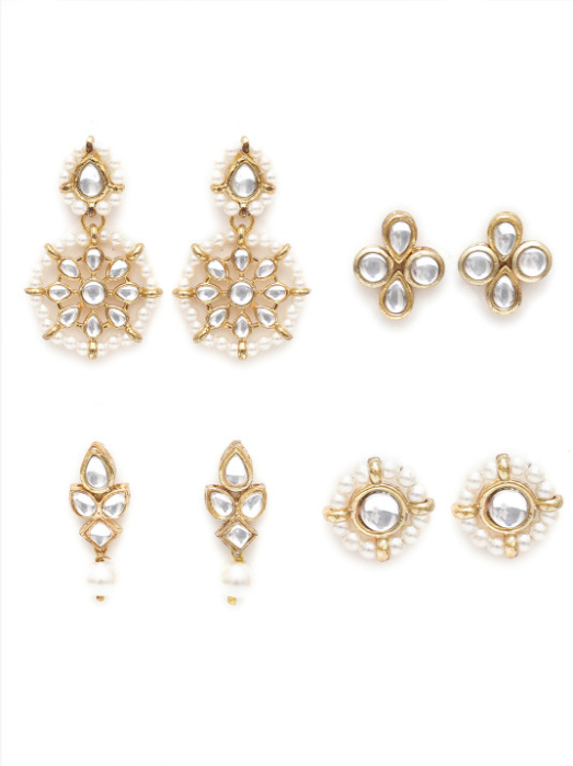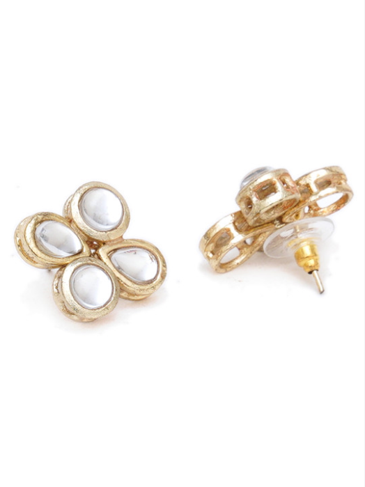 Set Of 4 Gold-toned classic studs, gold-plated, has kundan