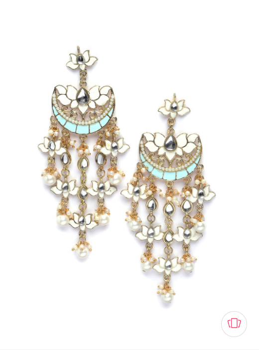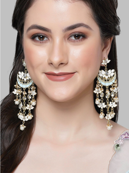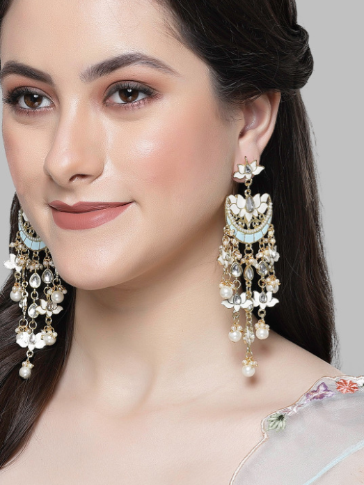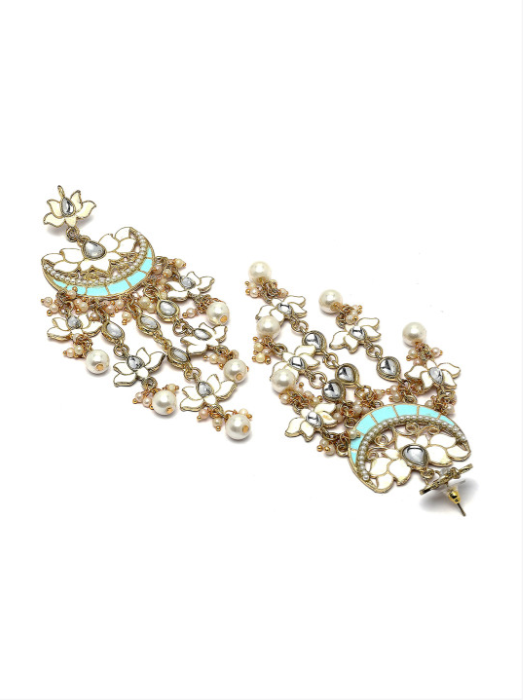 Gold-Plated Stone Studded & Beaded Drop Earrings