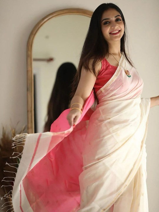 The blouse worn by the model might be for modelling purpose only. Check the image of the blouse piece to understand how the actual blouse piece looks like.